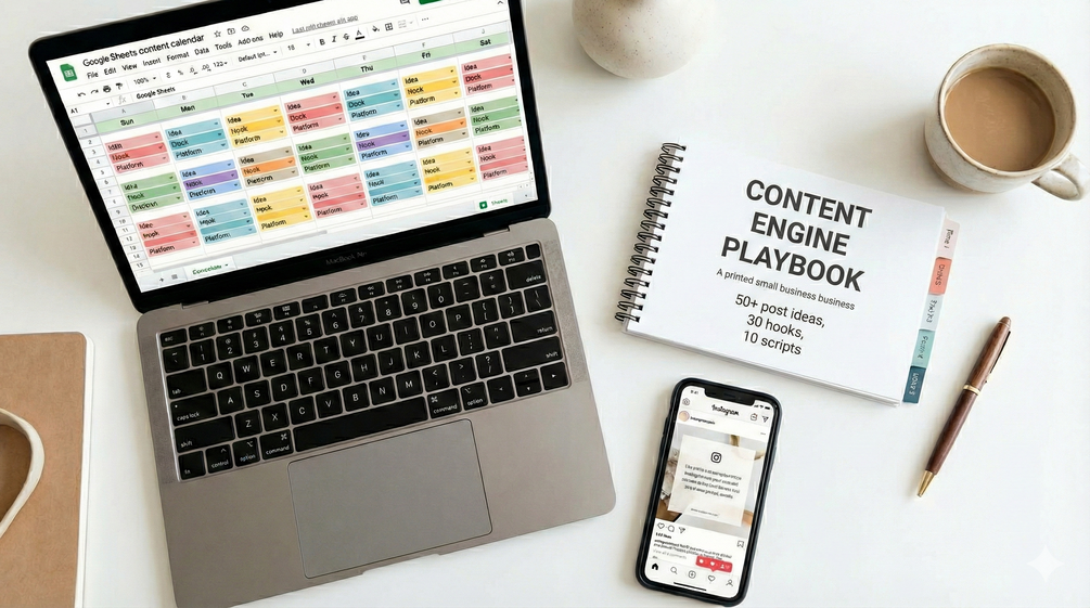 The Small Business Content Engine isn't a course you have to study. It’s a toolkit you can use immediately. It gives you the ideas, the hooks, and the schedule so you can batch 30 days of content in one sitting.